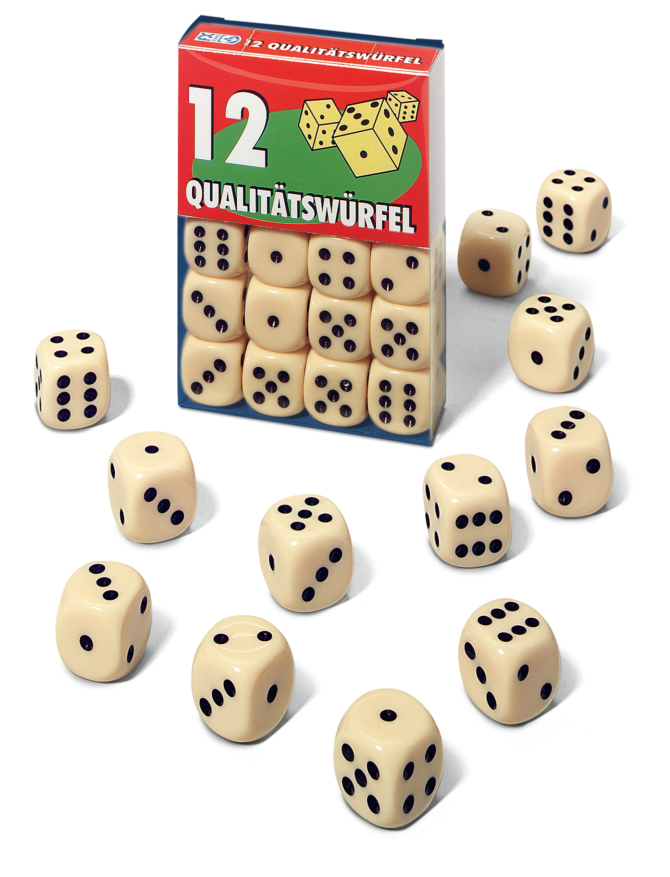 12 Würfel in Klarsichtbox