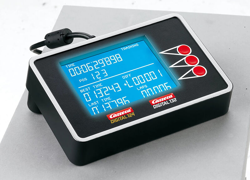 Der Rundenzähler wird direkt an die Control Unit (30352) angeschlossen und kann auch die Zeitmessung/Rundenzahl in der Pitlane (30356) anzeigen. Auf dem hintergundbeleuchteten Display können die Position, die schnellste Runde, die Gesamtzeit und die Zeitdiffer...