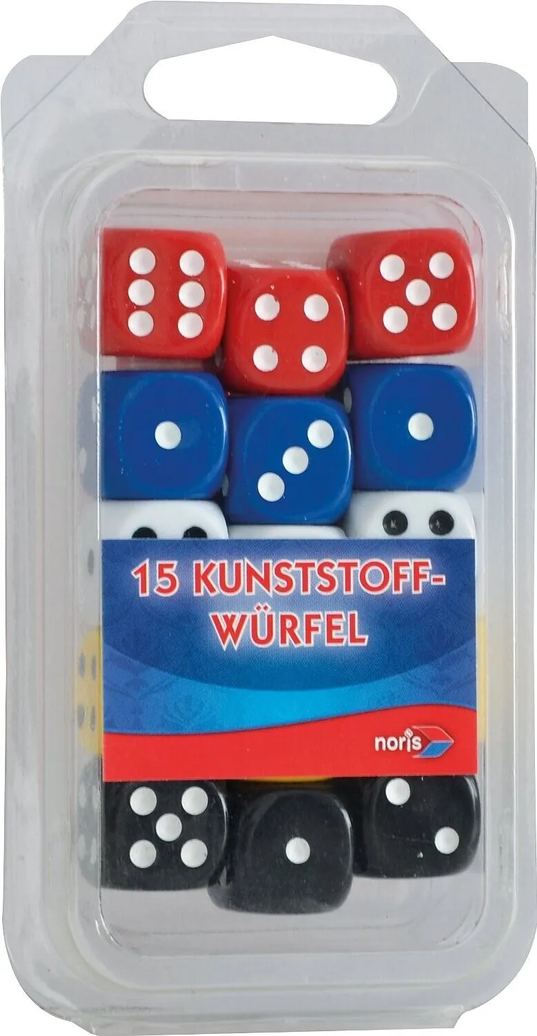 Inhalt: Würfel bunt, 16 mm, 15 Stück im Doppelblister.