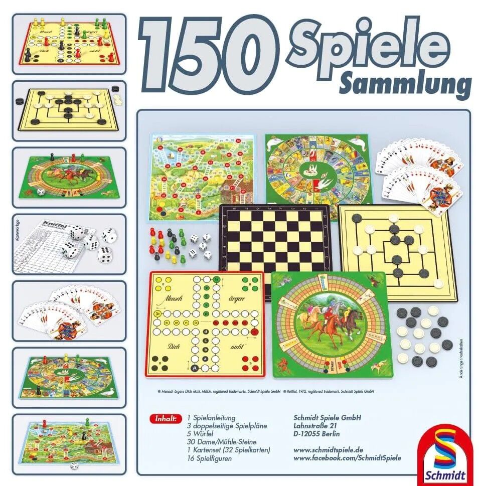 150 Spielemöglichkeiten z.B. Mensch ärgere Dich nicht, KNIFFEL (als Kopervorlage), Gänsespiel, Dame, Wolf und Schafe, Leiterspiel, Mau Mau, Mühle ... 150 Spielemöglichkeiten mit verschiedenen Brett-, Karten- und Würfelspielen in einer praktischen, kompakten Bo...