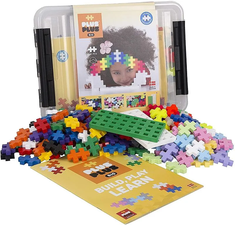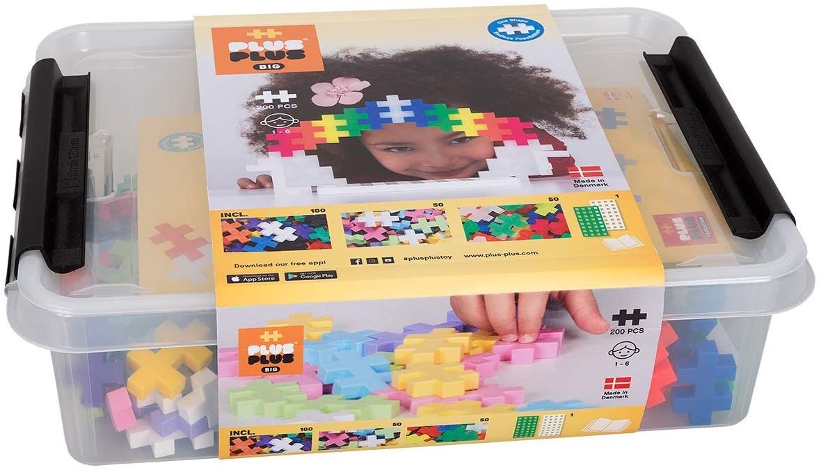 Plus-Plus Kreativ-Bausteine BIG sind perfekt für kleinere Hände oder größere Ideen. Mit der Plus-Plus BIG Aufbewahrungsbox ist man mit 200 Plus-Plus Teilen bestens ausgerüstet: 100 Basis-, 50 Neon-, 50 Pastellteile und 2 Steckplatten. Die Box hat eine Größe vo...