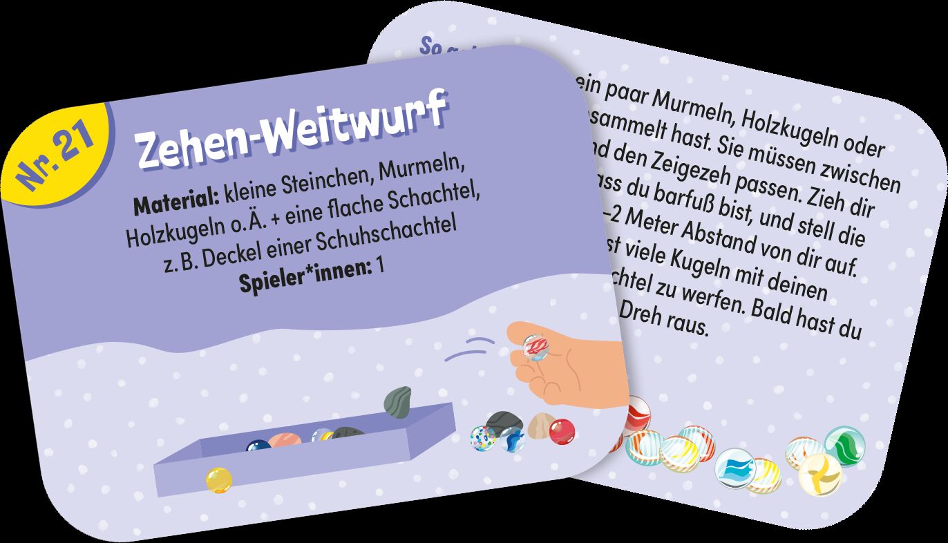 Fröhliche Kinderspiele ab 5 Jahren für zu Hause Regen? Kein Problem! Mit den lustigen Indoor-Spielideen in dieser Metalldose ab 5 Jahren hat Langeweile keine Chance! Die 25 stabilen und liebevoll gestalteten Kärtchen enthalten leicht verständliche Spielanleit...
