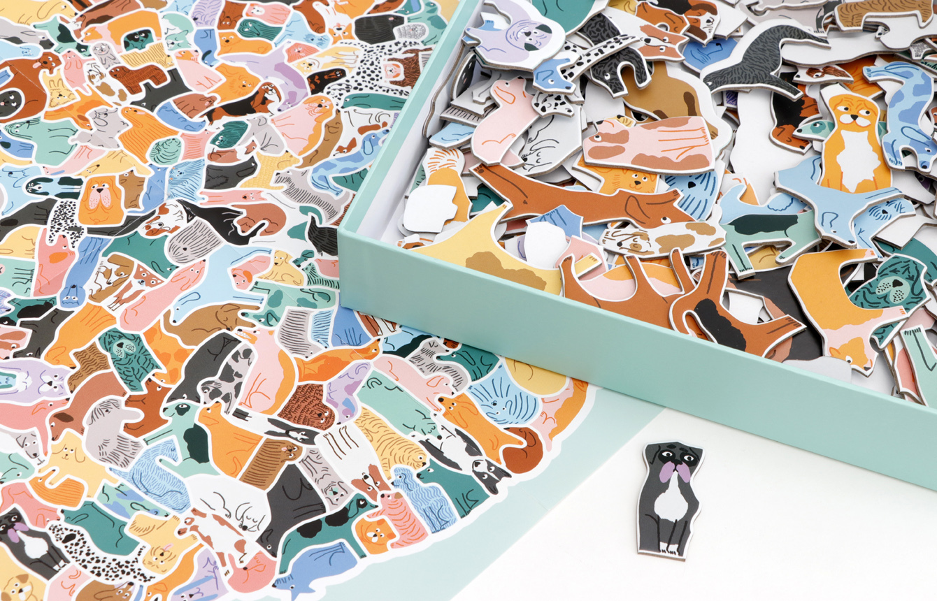 -Ein ganz besonderes Puzzle: alle Teile sehen aus wie Hunde, die sich aneinanderschmiegen-Wer findet die eine Katze?-Jede Menge Puzzle-Spaß für die ganze Familie Jeder weiß, was passiert, wenn viele Hunde gut gelaunt aufeinandertreffen: es gibt ein riesiges Du...