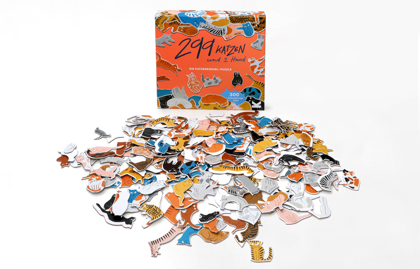 -Ein ganz besonderes Puzzle: alle Teile sind anders und sehen aus wie 299 kleine Katzen, die sich aneinanderschmiegen-Wer findet den Hund?-Jede Menge Puzzle-Spaß für die ganze Familie Jeder weiß, dass es sinnlos ist, Katzen hüten zu wollen, und dieses teuflisc...