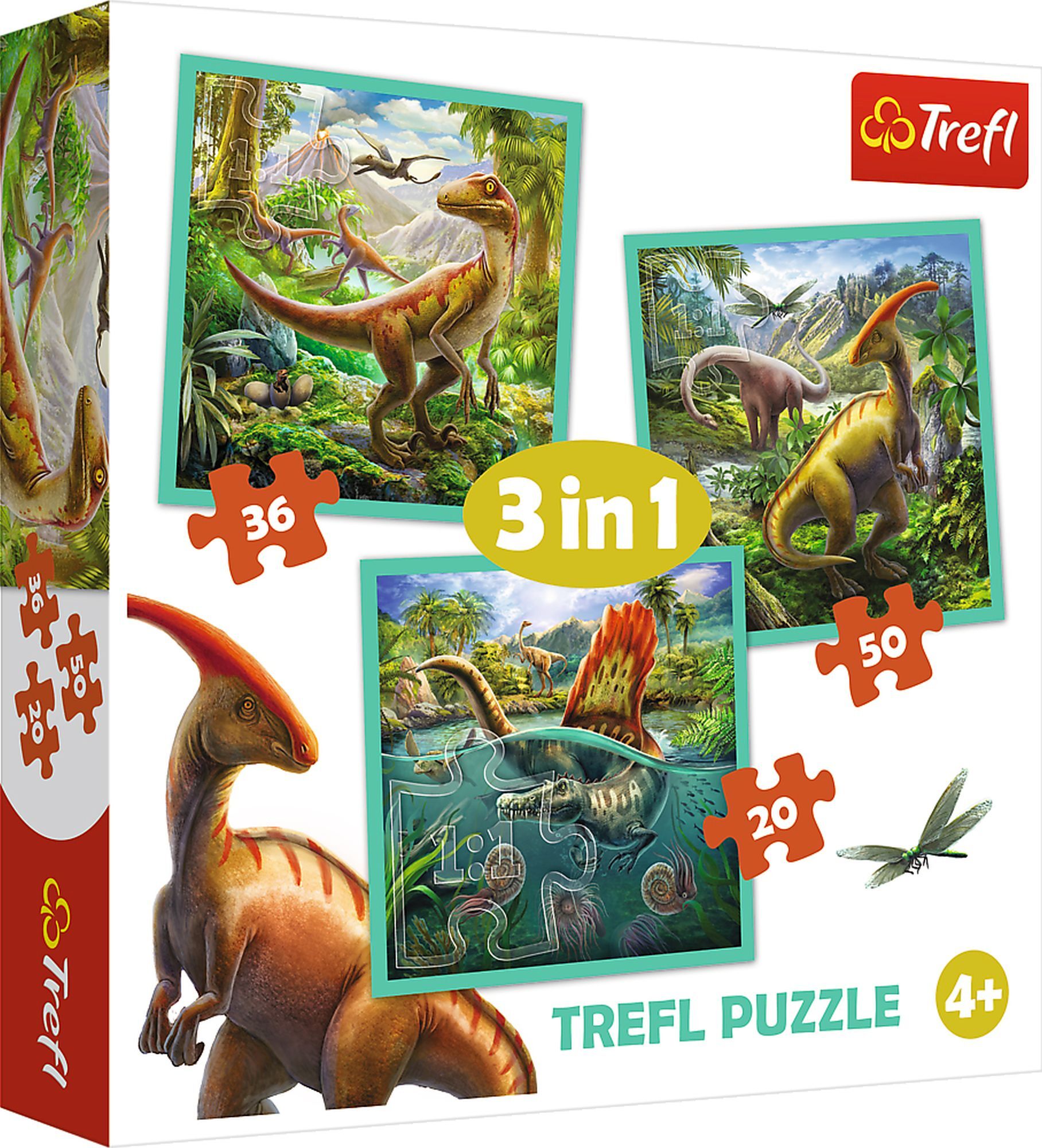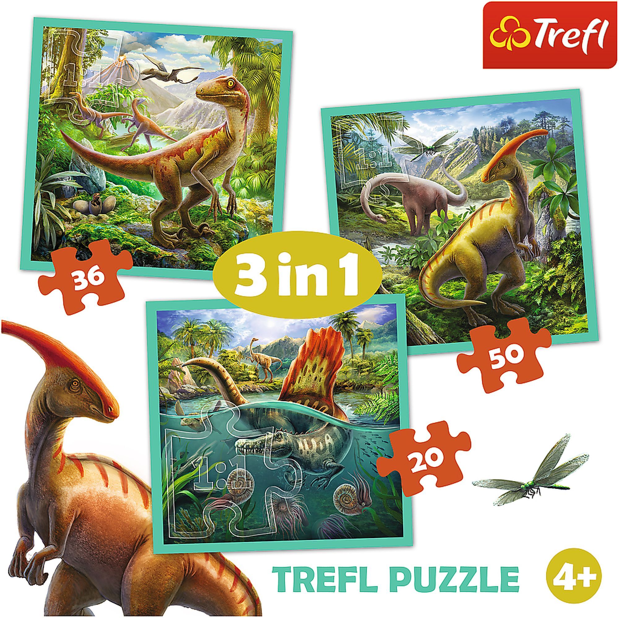 TREFL 34837 3 in 1 Puzzle - Dinosaurier Puzzle 3 in 1 (20, 36 und 50 Teile) Nicht eins, nicht zwei, sondern gleich 3 Puzzle Bilder befinden sich in der Schachtel-Riesen Spaß für Puzzleliebhaber! Nach dem zusammensetzen erhalten wir 3 Bilder. Das Spiel eignet s...