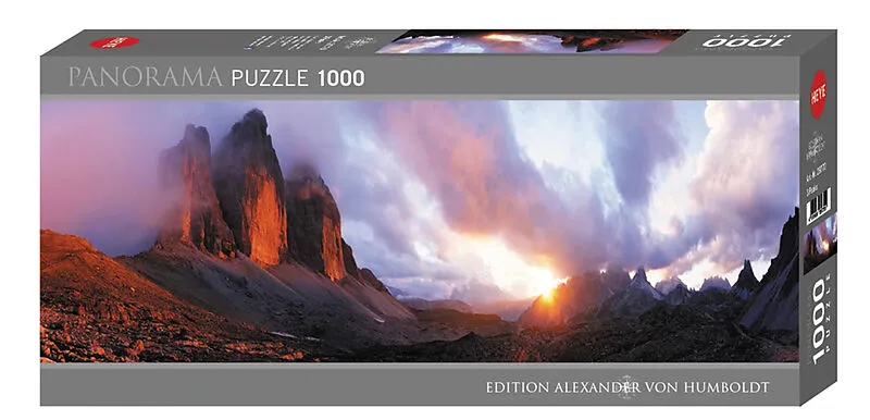 Obwohl die Drei Zinnen zu den beliebtesten Klettergipfeln der Alpen zählen, gibt es Momente, in denen sie in majestätischer Einsamkeit erstrahlen wie in diesem Puzzle! Gelegte Grösse: 94,5x32,6 cm.