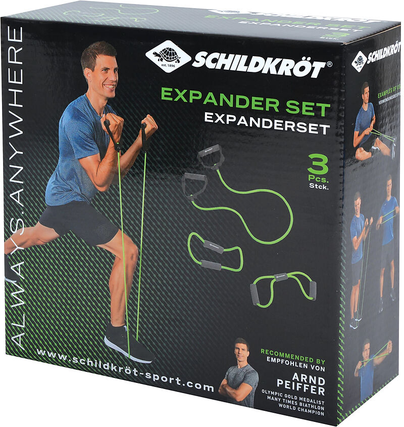 Vielseitiges Set aus 3 Expandern. Besonders vielseitig ist das 3-teilige Expander Set aus thermoplastischem Elastomer (TPR) mit weichem Griff. Unterschiedliche Widerstände ermöglichen ein effizientes und vielseitiges Fitness-Training verschiedener Körperpartie...