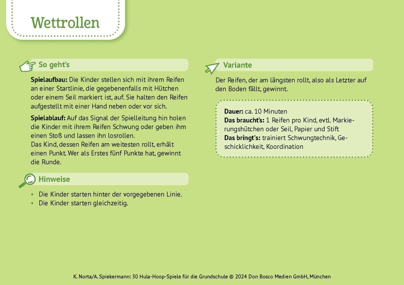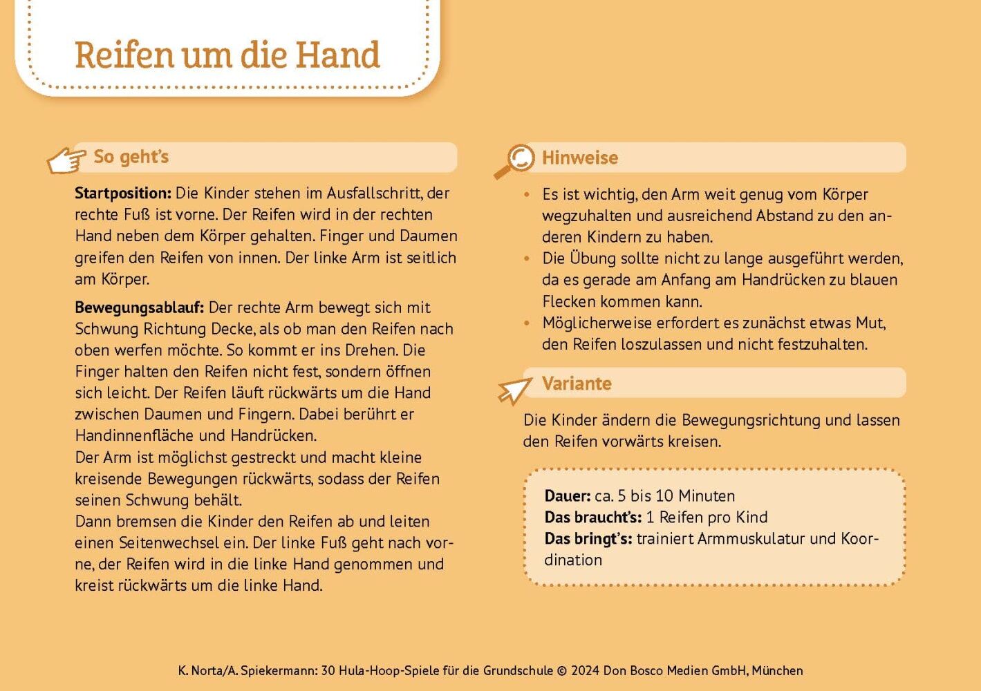 Vom schnellen Aufwärmspiel bis zur Cool-down-Übung: Die variantenreichen motorischen Spiele mit Gymnastikreifen fördern Beweglichkeit und Koordination. Eine runde Sache: kreative motorische Spiele mit Hula-Hoop-Reifen Von der Reifenkette bis zum Wettrollen: Mi...