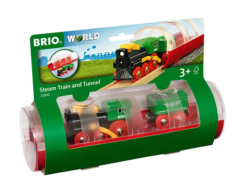 Die BRIO World Tunnel Box Dampflokzug ist schön gestaltet mit einem klassischen Design und Details aus Holz. Das goldene Zeitalter der Spielzeugzüge ist zurück, wenn diese wunderschöne Dampflok und ihr Waggon durch deine BRIO World Holzbahn schnauft. Die cleve...