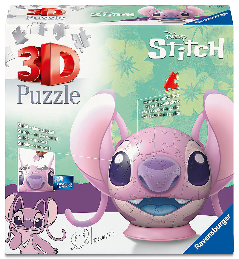 Stitch erobert die Herzen im Sturm: Jetzt kommt seine süße Disneypartnerin zu dir nach Hause! Mit diesem 3D Puzzle-Ball mit den dekorativen Ohren aus stabiler Pappe hält die beliebte Stich Angel Einzug in jedes Zimmer.