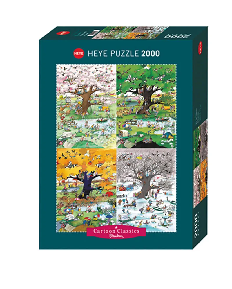 Roger Blachons Baum kennt sich aus im Jahr - er hat die Liebenden im Frühling gesehen, die Badenden im Sommer, die Jäger im Herbst und im Winter die Rotznasen. Gelegte Größe: 68,8x96,6cm