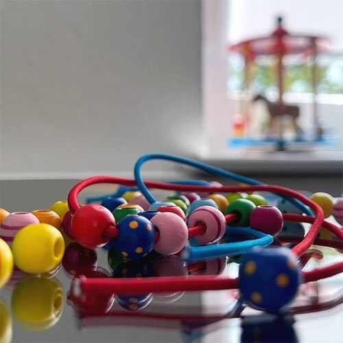 Bastel dir deine eigene Kette oder ein schickes buntes Armband, indem du die einzelnen Perlen auf eine der farbigen Schnüre auffädelst.