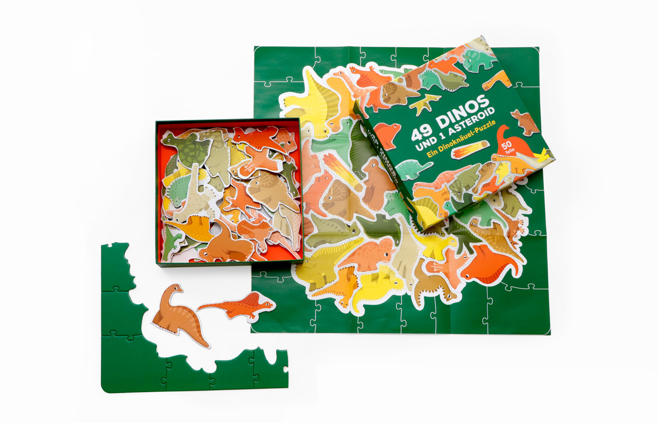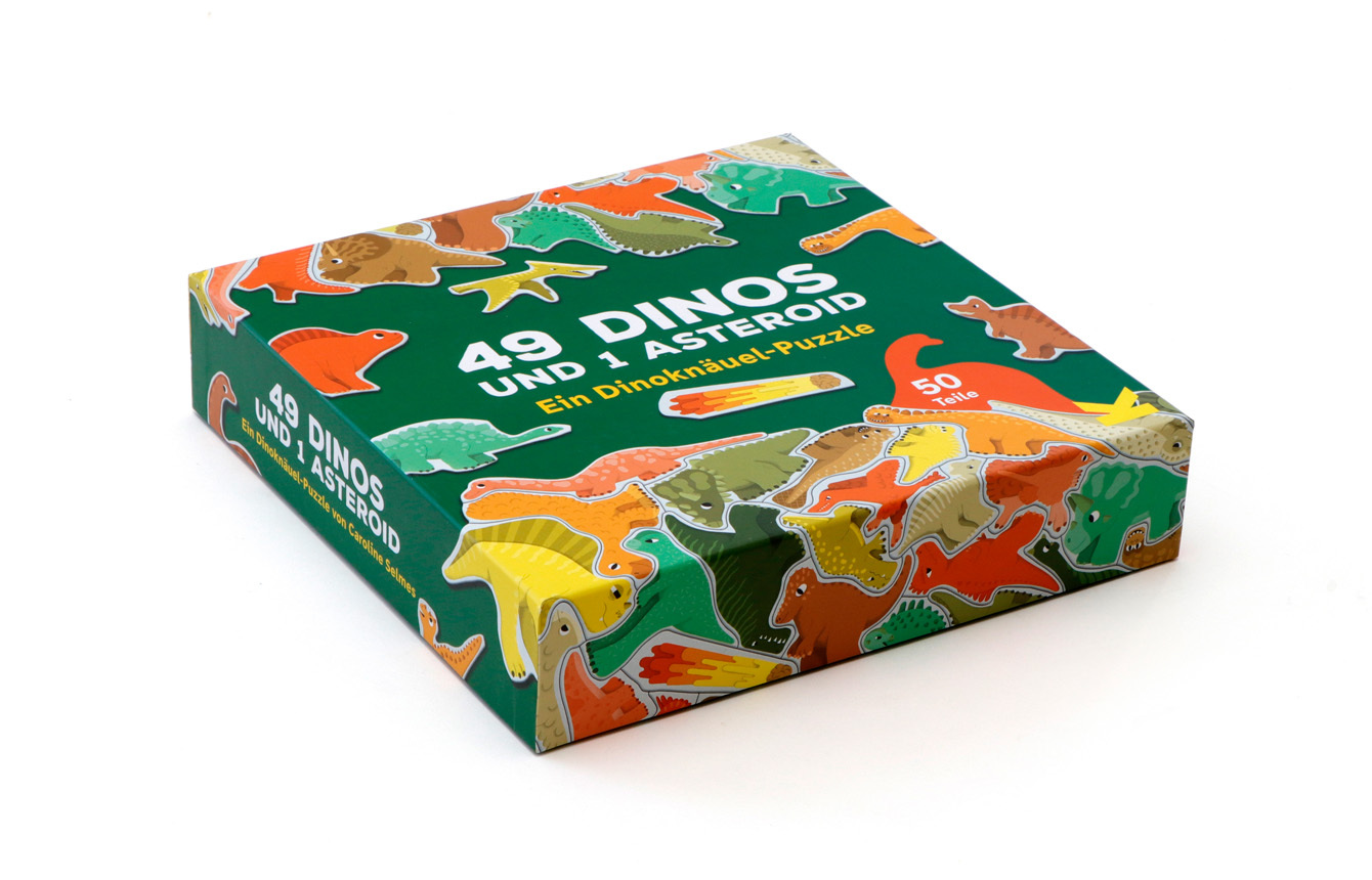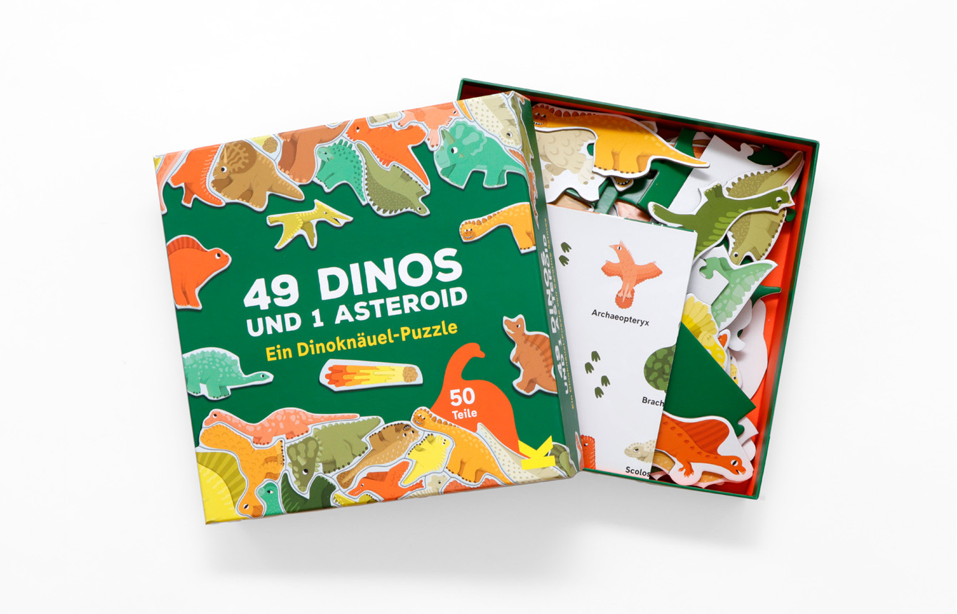 49 Dinos und 1 Asteroid. Ein Dino-Knäuelpuzzle Für alle Dino-Fans und Puzzle-Profis! Hier kommt 49 Dinos und 1 Asteroid! In diesem kniffligen Knäuel-Puzzle für Kinder ab 6 Jahren gibt es keine gewöhnlichen Puzzleteile, denn alle haben die Form von Dinosauriern...