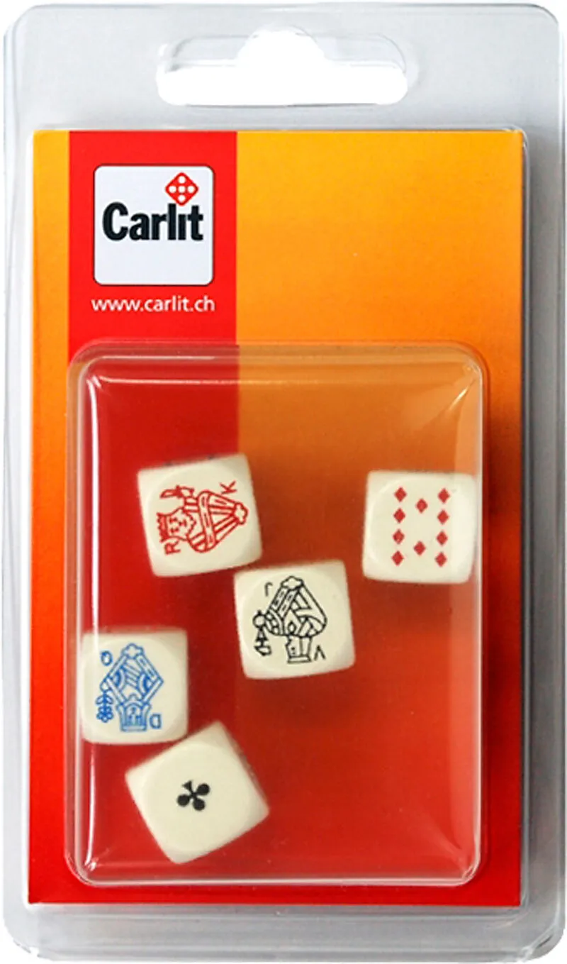 Auf jeder der 6 Seiten der Pokerwürfel sind Figuren eingraviert, deren wertmässige Reihenfolge die nachstehende ist: