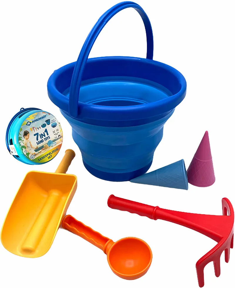 Schildkröt Funsports - 7in1 Sand Toys Falteimer Set - blau Welche Eltern kennen nicht das Problem, dass die Reisekoffer oder das Auto fertig gepackt sind und das normalerweise sperrige Sandspielzeug noch mit in den Urlaub soll? Oder es geht auf den Spielplatz ...
