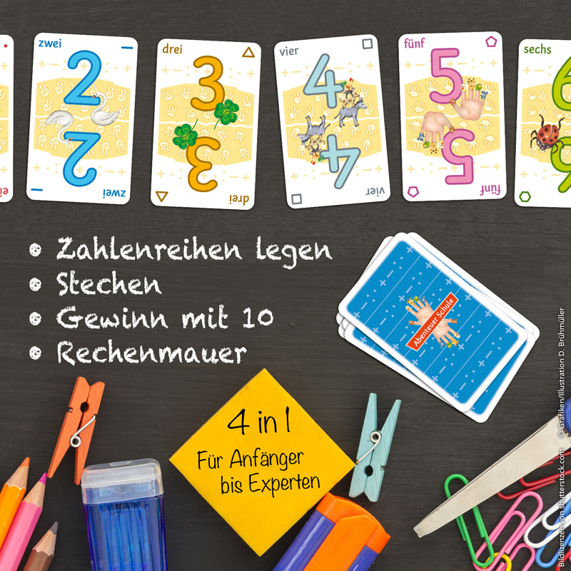 Zahlen und Mengen erkennen, vergleichen und ordnen... Summen bilden und weitere Rechenarten kennenlernen... den kreativen und flexiblen Umgang mit Zahlen üben und verinnerlichen... mit dem Zahlenspiel aus der Serie Abenteuer Schule lernen kleine Schulanfänger ...