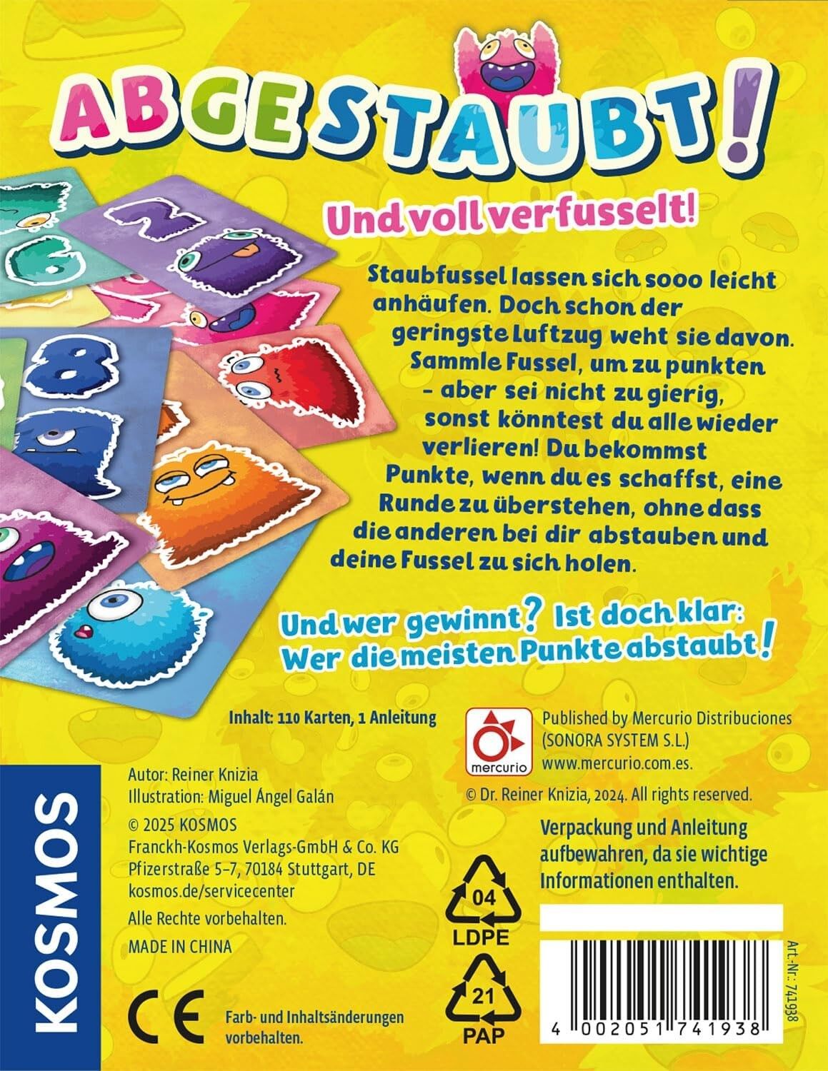 Turbulentes Kartenspiel mit cleverem Push-your-luck-Prinzip und überraschenden Wendungen. - Lustiges Staubfussel-Thema mit fröhlichem, farbenfrohem Design. - Ereignisreiche Spielzüge durch das Abstauben der Karten anderer Mitspielerinnen und Mitspieler. - Schn...