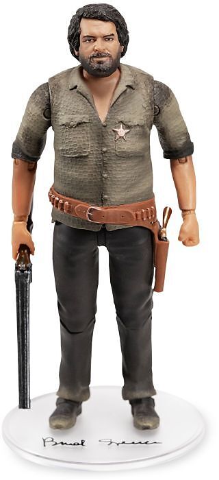 Actionfigur, Bud Spencer, 18cm Die 18 cm große Figur verfügt über 14 Bewegungspunkte und wird mit weiterem Zubehör in einer Fensterbox mit Hänger geliefert. Ein transparenter Standfuß mit aufgedruckter Signatur verhilft Bambino zu einem sicheren Stand und ein ...