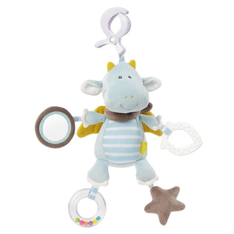 Dieses Activity-Plüschtier eignet sich super für dein Baby. Das Plüschtier ist ausgestattet mit einer Klammer um es an einem Kinderwagen zu befestigen. Ebenfalls hat es einen Spiegel, einen Beissring und eine Rassel.
