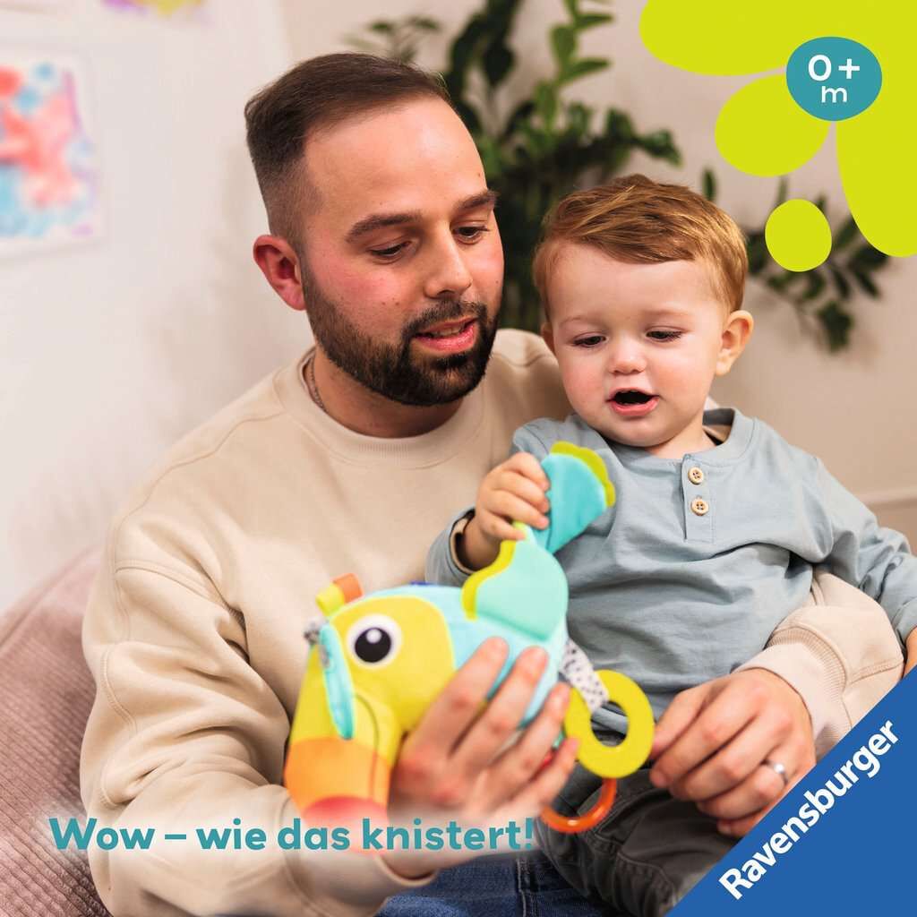 Dieses kuschelweiche Activity-Plüschtier erkunden die Kleinsten mit allen Sinnen. Abwechslungsreiche Spielelemente, spannende Geräusche und eine große Materialvielfalt laden zum Greifen und Spielen ein - ideal für zuhause und unterwegs.