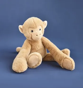 Ein traumhaft weicher Affe mit langen Schlenkerbeinen und -armen zum Liebhaben. Verpackt im dazu passenden Geschenkkarton.Maschinenwäsche bei 30° Grad. Grösse: 35 cm
