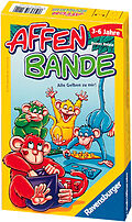 Affenbande von Ravensburger: Wer hat als Erster seine farbige Affenbande zusammen Alle Äffchen purzeln wild doch welche Farbe ziehen die 2-4 Spieler als nächstes aus dem Beutel Hat das Äffchen dieselbe Farbe wie die Spieltafel des Mitspielers, muss es dort abg...
