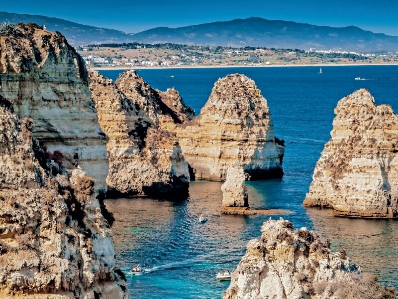 Im Süden von Portugal haben die Baumeister der Natur eine wilde Landschaft mit Felsformationen, Grotten, Tunneln, Bögen und Felsbrocken geschaffen. Die Skulpturen, die durch Wind und Wasser modelliert wurden, zeigen sich als beeindruckende Gebilde im türkisbla...