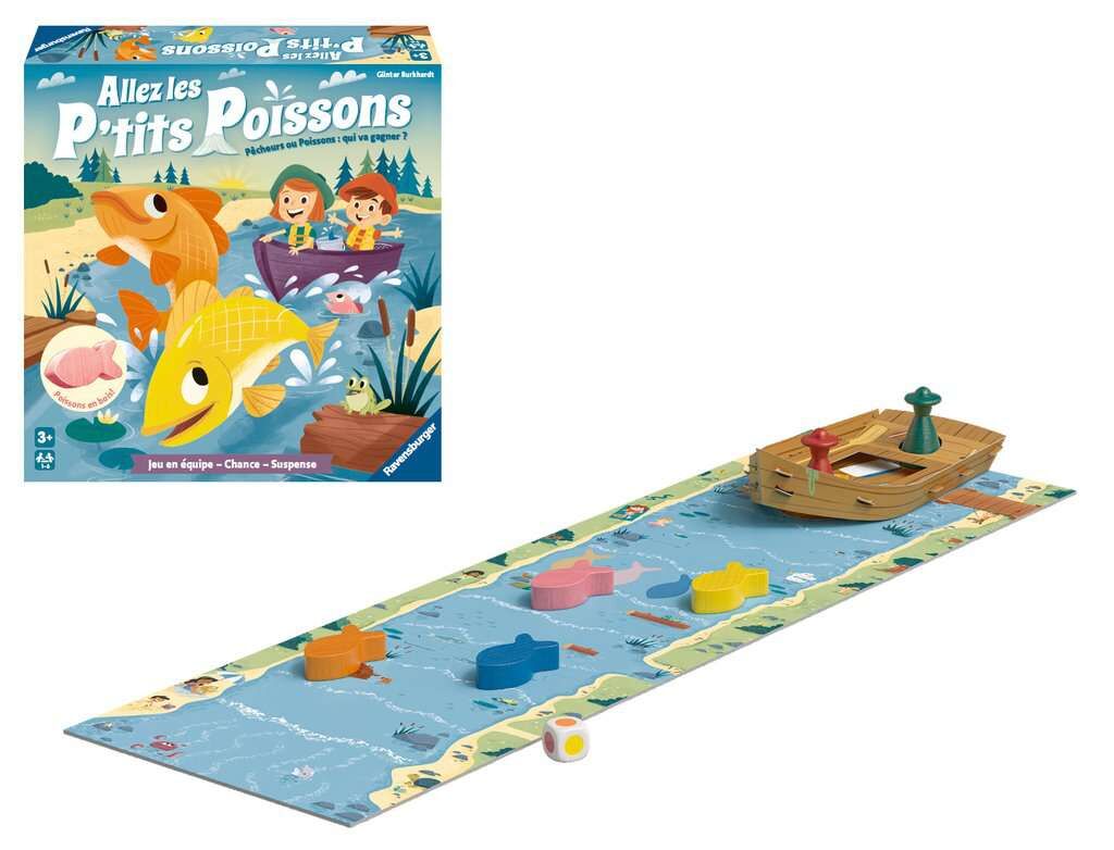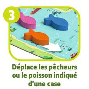 Am Fluss herrscht große Aufregung: Die Fischer und die Fische liefern sich ein Wettrennen! Würfelt und bewegt entweder den Fisch der entsprechenden Farbe oder das Boot mit den Fischern um ein Feld vorwärts. Wenn die Fische das Meer erreichen, sind sie gerettet...