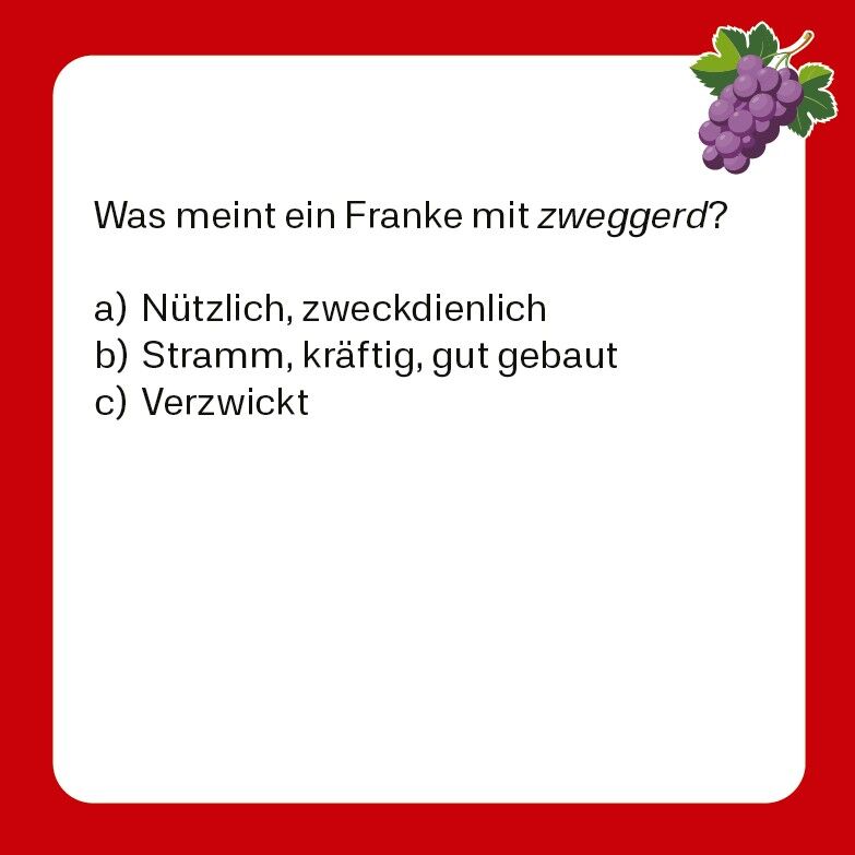 Allmächd Fränkisches Dialekt-Quiz- Lustiges Fränkisch-Quiz mit 66 Fragen Mit dem originellen Dialekt-Quiz Allmächd tauchst du ein in die skurrile, charmante und oft urkomische Welt der fränkischen Sprache . Ob du aus Mittelfranken, Oberfranken oder Unterfrank...