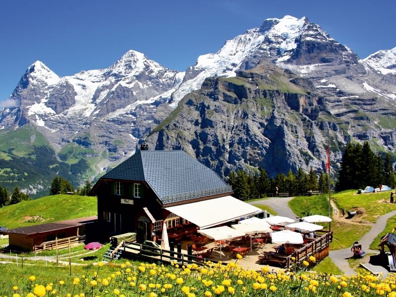 Ein Hauch von Urlaub in den eigen vier Wänden - zu jeder Jahreszeit. Traumhafte Schweizer Bergblicke des Berner Oberlandes, märchenhafte Winterlandschaft, tiefverschneite Chalets, schroffe Felsen, blühende Almwiesen umsäumt von schneebedeckten Berggipfeln, gol...