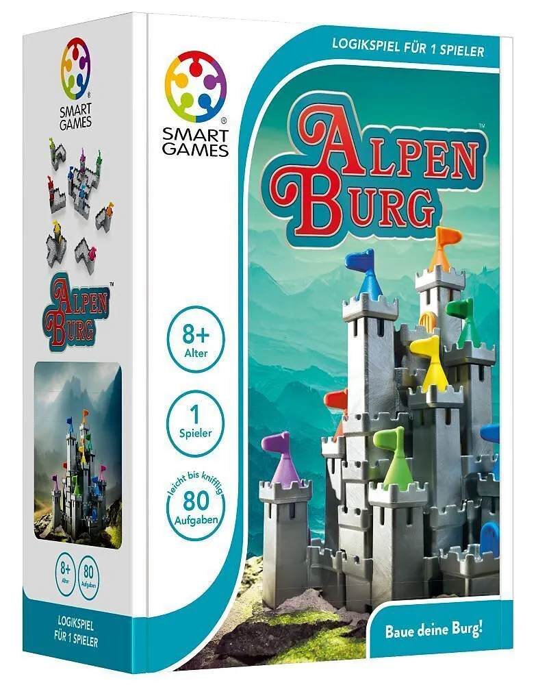 Alpenburg - Wieviele Türme hat die Burg? Die Fürstinh möchte eine neue Burg bauen und hat genaue Vorstellungen..., aber wie viele Türme möchte sie denn nun? Und welche Farben sollen die Fahnen auf den einzelnen Türmen haben? Kannst Du die Burg richtig nach ihr...