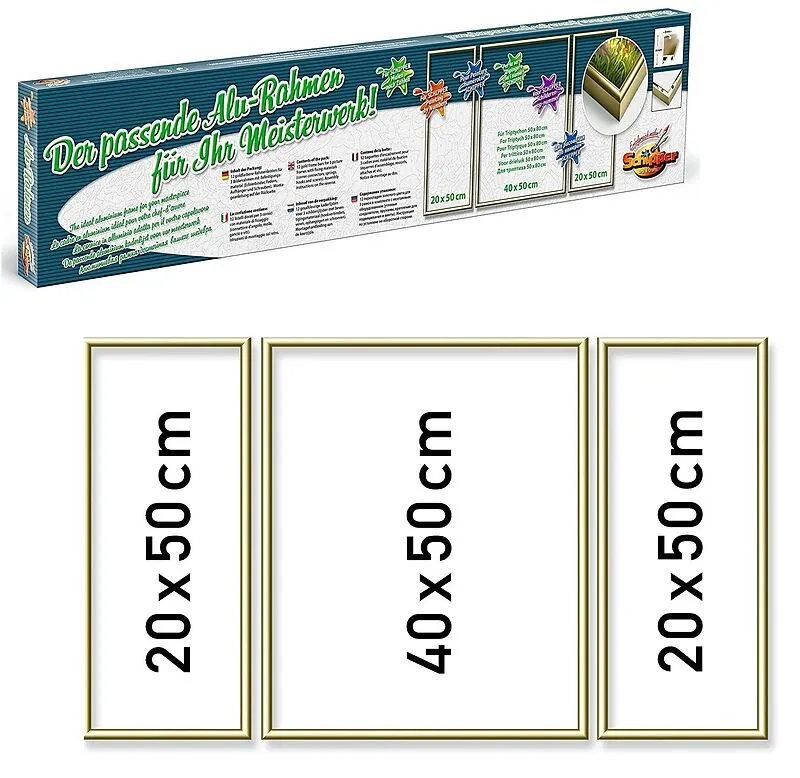 Ihr Alurahmen passend für jede Wohnungseinrichtung. Einfache Selbstmontage mit Anleitung für Ihr Meisterwerk. Der goldglänzend eloxierte Rahmen mit seinem schmalen Profil verleiht dem Gemälde Ausdruckskraft und umrahmt es in dezenter Weise. Der Lieferumfang be...