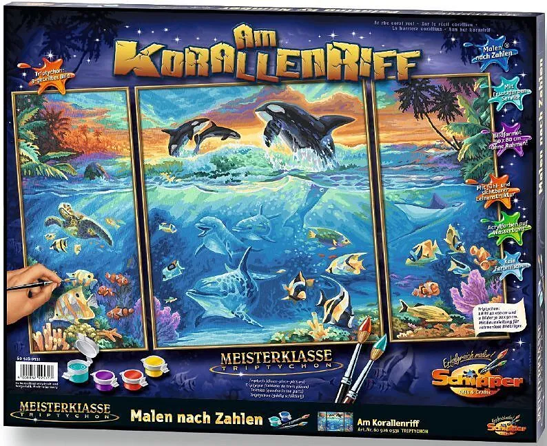 Triptychon dreiteiliges Bild Ein tropisches Korallenriff ist atemberaubende Schönheit unter Wasser. Es ermöglicht maritimes Leben mit fließenden Grenzen zwischen Pflanze und Tier, die Wiege des Lebens überhaupt. Das Motiv "Am Korallenriff" zeigt einen lebhafte...