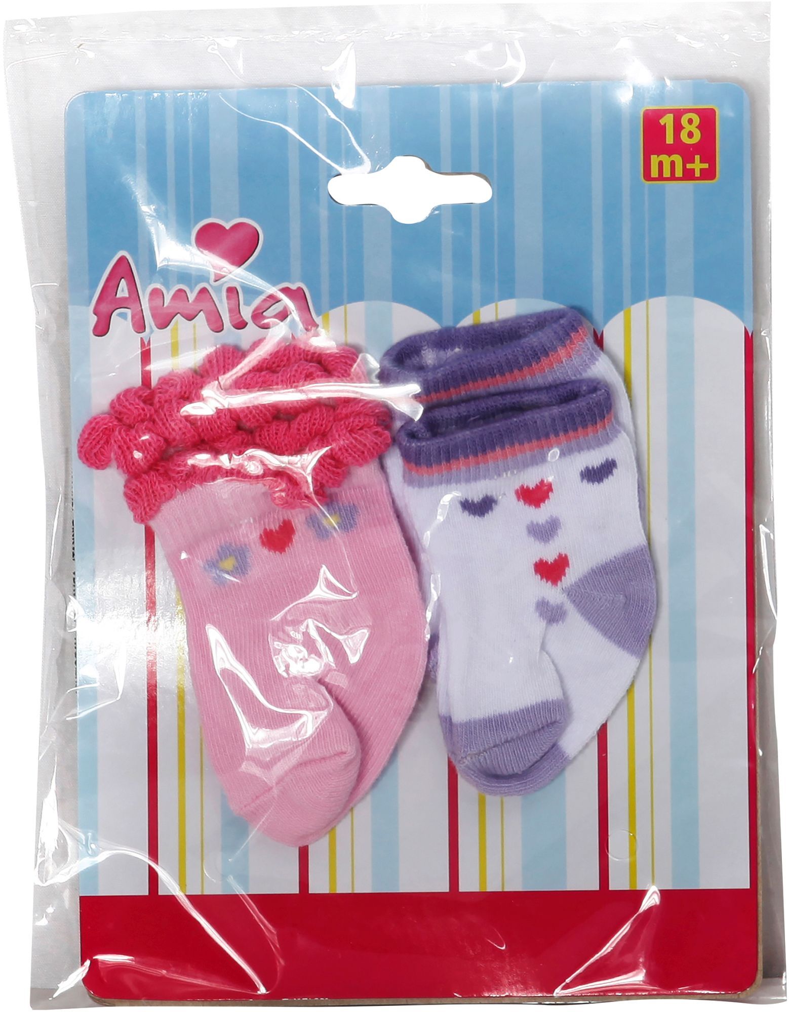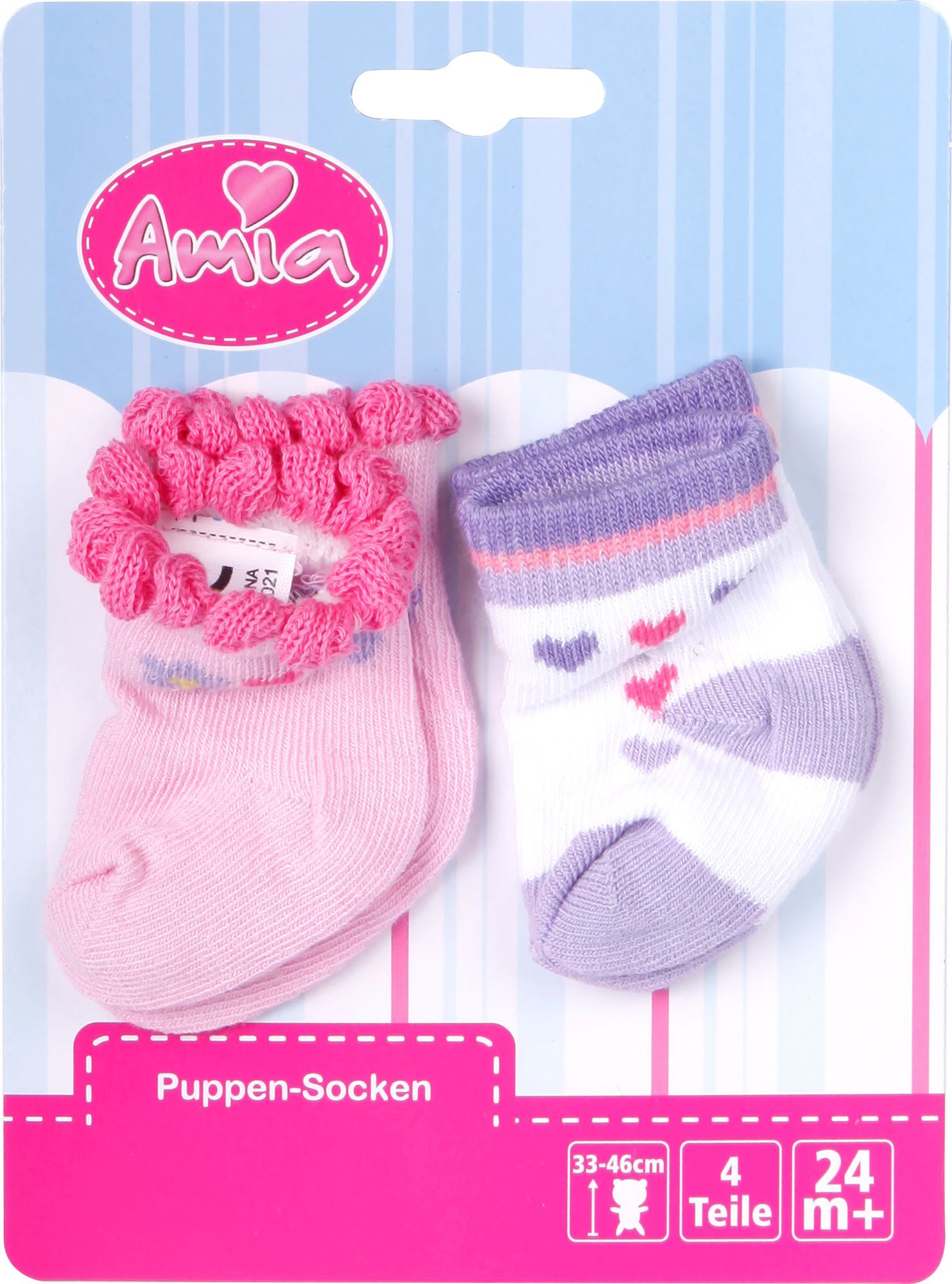 Amia Puppen-Söckchen für Puppen von Größe 28 bis 33 cm geeignet. Inhalt 2 Paar. Größe der Socken ca. 7x5x0,5cm. Für Kinder ab 24 Monaten.