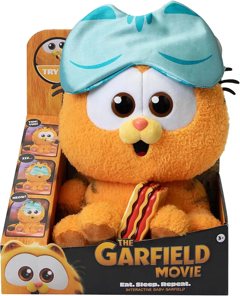 Dieses interaktive Garfield-Baby ist mehr als nur ein Plüschtier. Gib ihm Lasagne zu essen und hör zu, wie es ihm schmeckt. Danach will er schlafen - stülpe ihm die Schlafmaske über die Augen und höre seinen tiefen Atem.