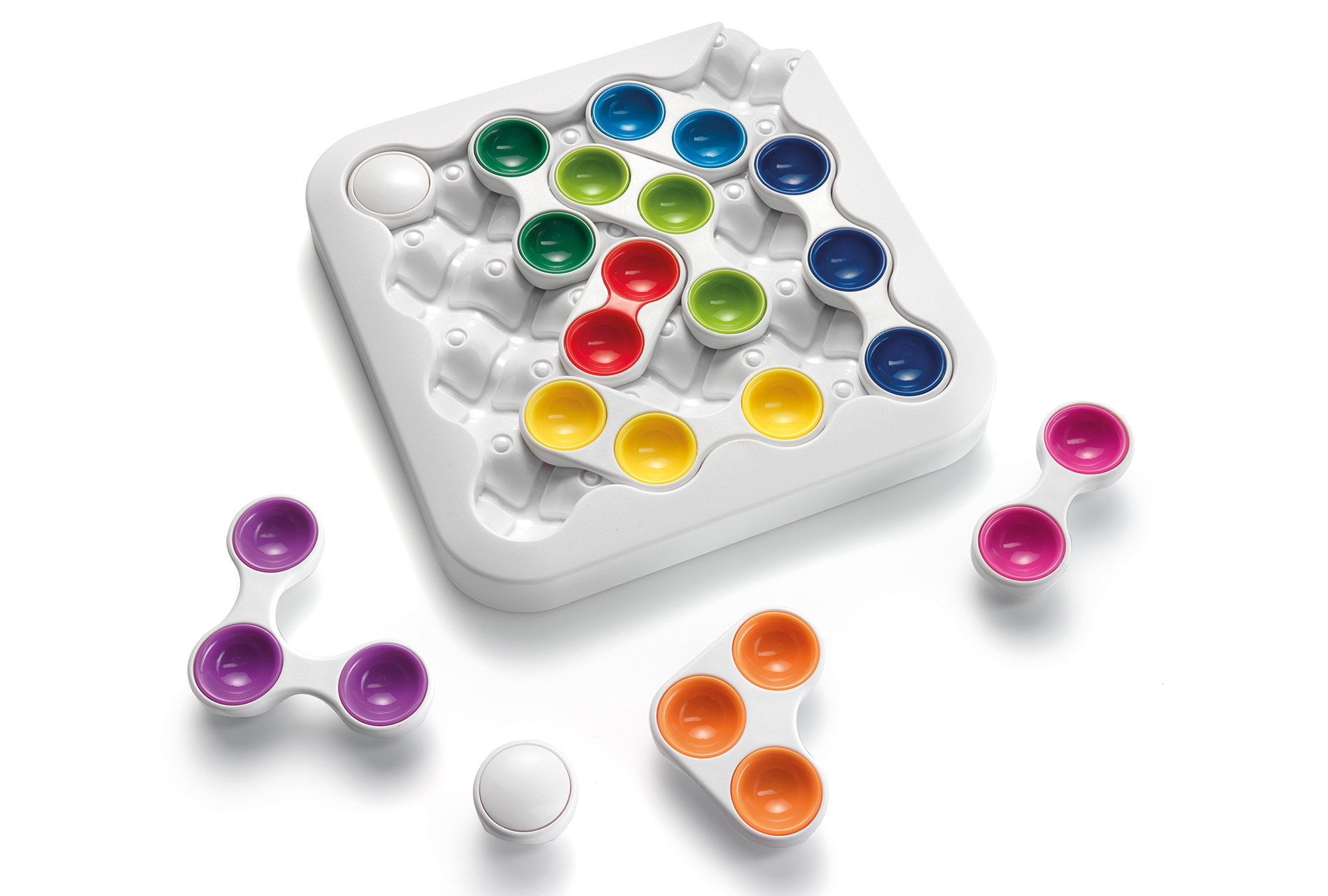 Ein Virus ist im Labor, kannst du es hinaus befördern? Ein verdrehtes Schiebepuzzle für Jung und Alt mit 60 Aufgaben in verschiedenen Schwierigkeitsstufen. Für 1 Spieler. Ab 8 Jahren.