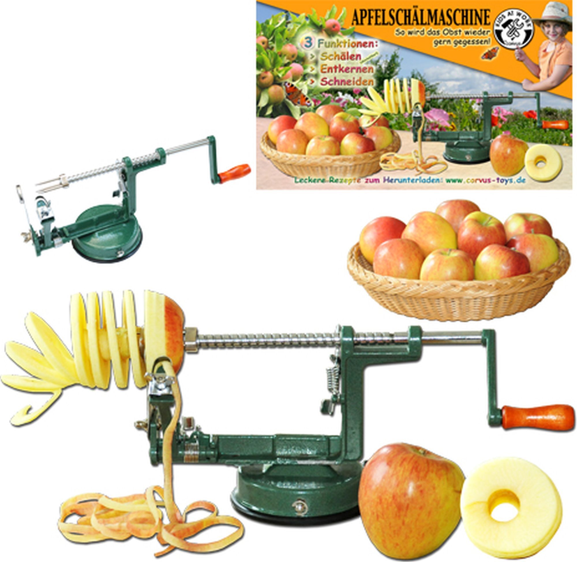 Apfelschaelmaschine- so wird das Obst wieder gerne gegessen. 3 Funktionen: Schaelen (abschaltbar), entkernen und schneiden- Eine wunderbare Maschine !!!