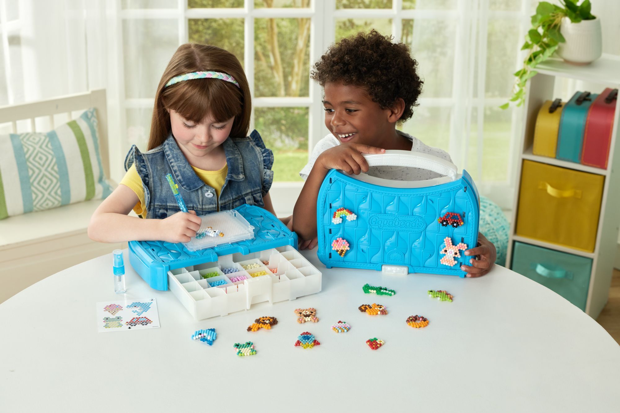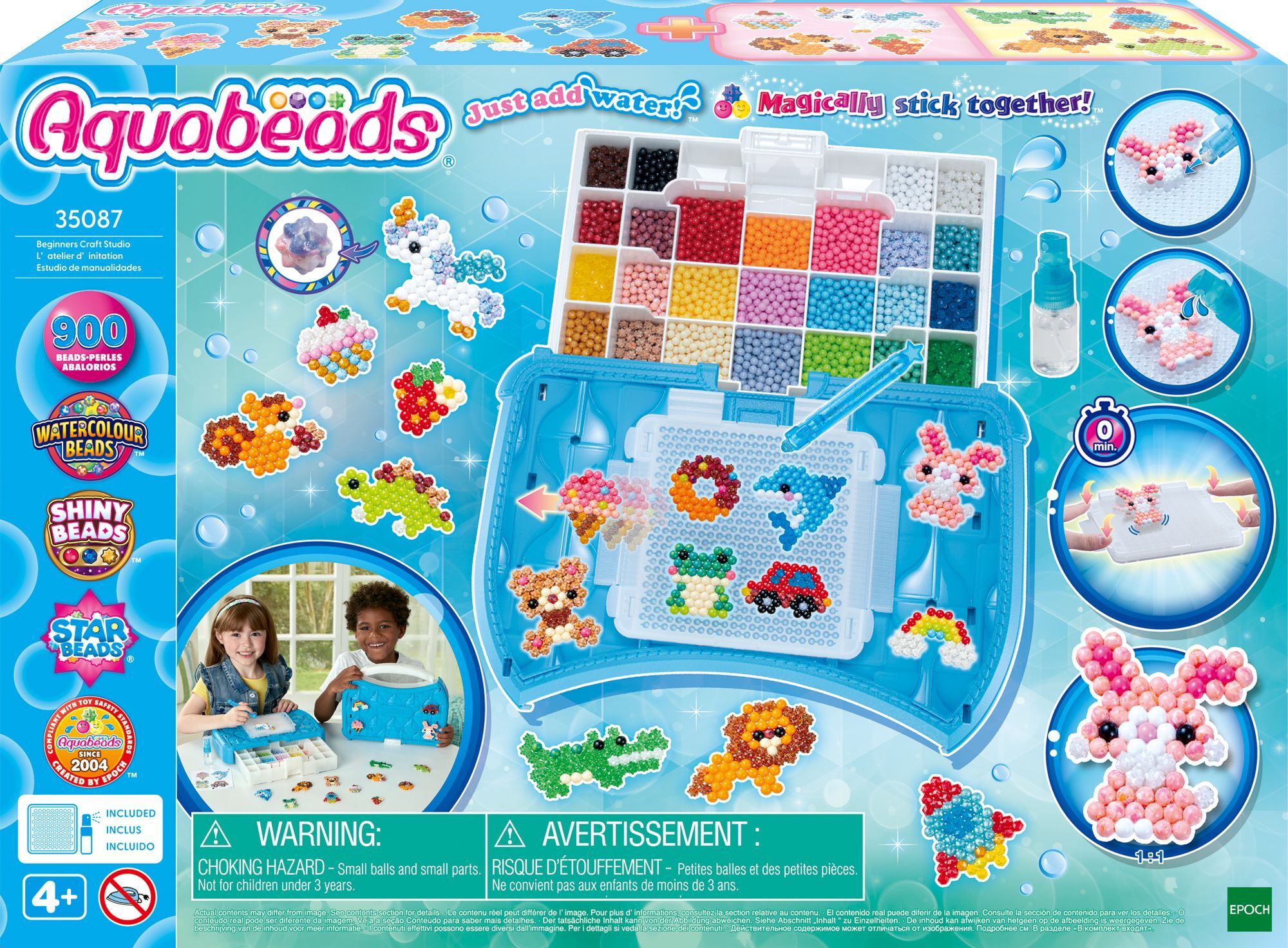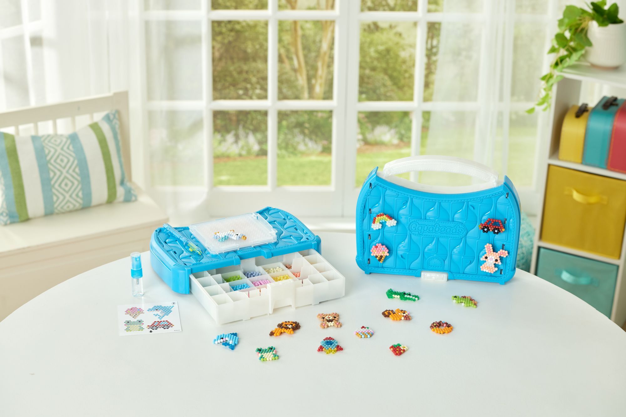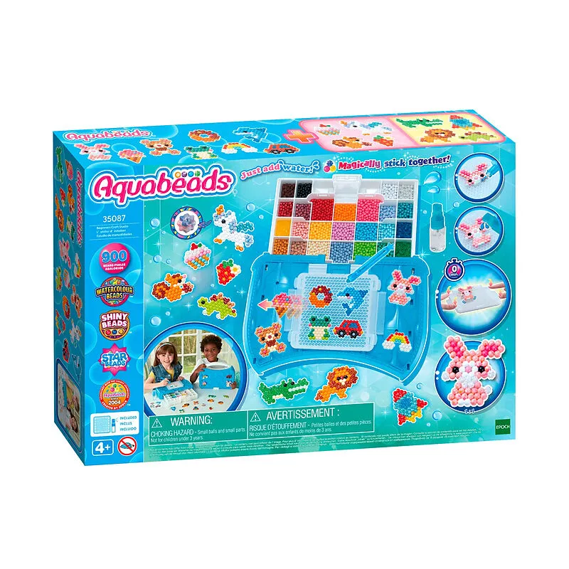 Bastelstudio Starter Set 900 bunte Bastelperlen, pausenloser Bastelspaß mit der neuen Pop-Up Bastelplatte inkl. Perlenkoffer als Aufbewahrungsbox mit Pop-up Bastelplatte, Sprüher, Perlenstift und Motiv-Vorlagen. Praktischer Koffer indem die Aquabeads überall m...