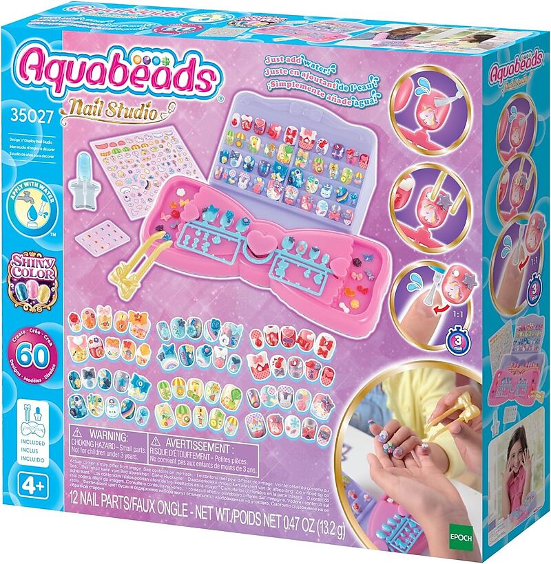 Nagelstudio Starter Set Tolle Fingernägel designen mit dem Aquabeads Nagelstudio! Die Dekoteile werden aus der Schablone gelöst und auf den Basteltisch in Schleifenform gelegt. Dann steckt man die Schablone mit den Nägeln unter das Herz des Basteltischs. Mit d...