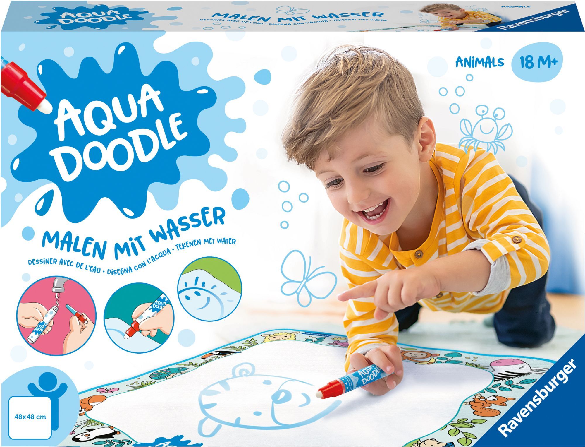 Aquadoodle Animals mit seiner lustigen Tierwelt inspiriert Kleinkinder ab 18 Monaten zum ersten Malen. Einfach Wasser in den Stift, schon können sie nach Herzenslust auf der magischen Matte losmalen. Das Geheimnis: In Kontakt mit Wasser färbt sich die Malmatte...
