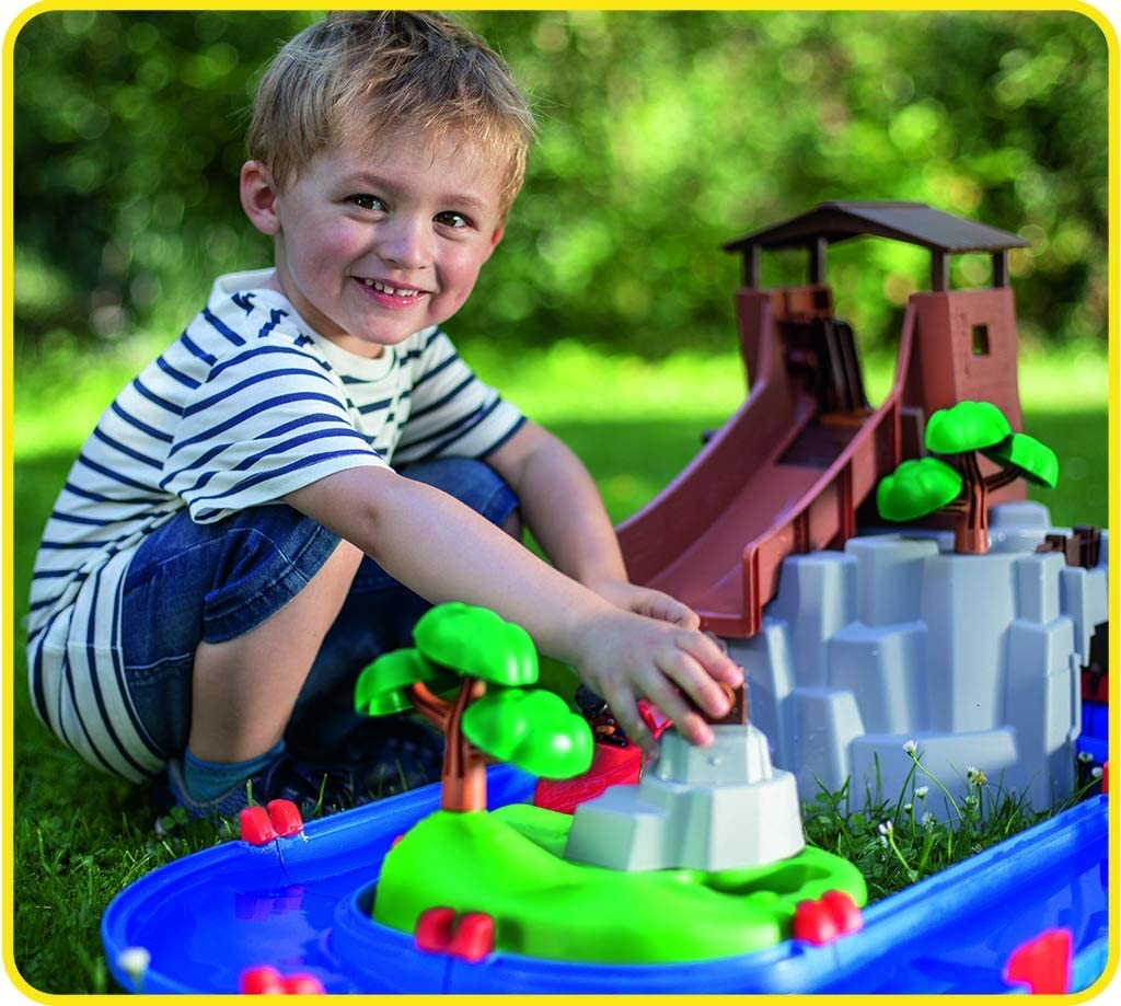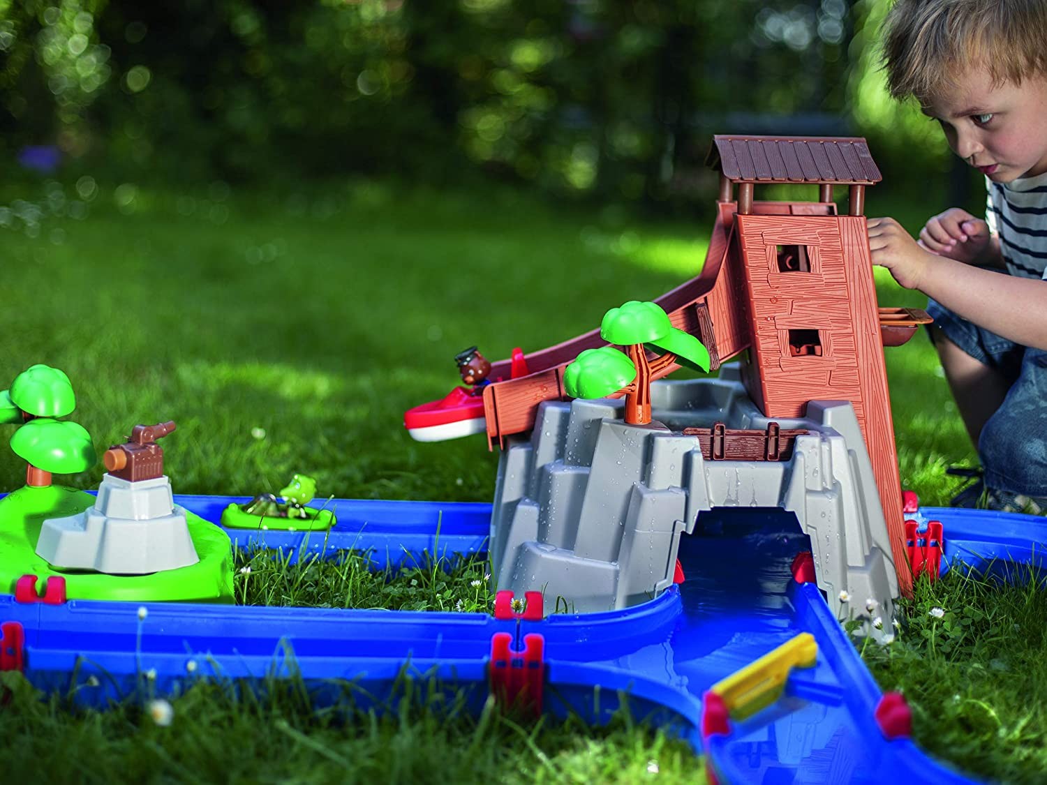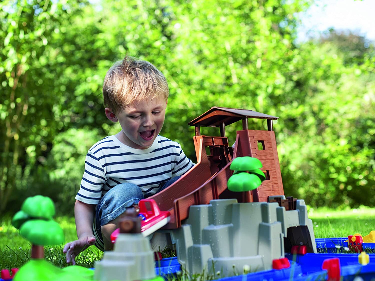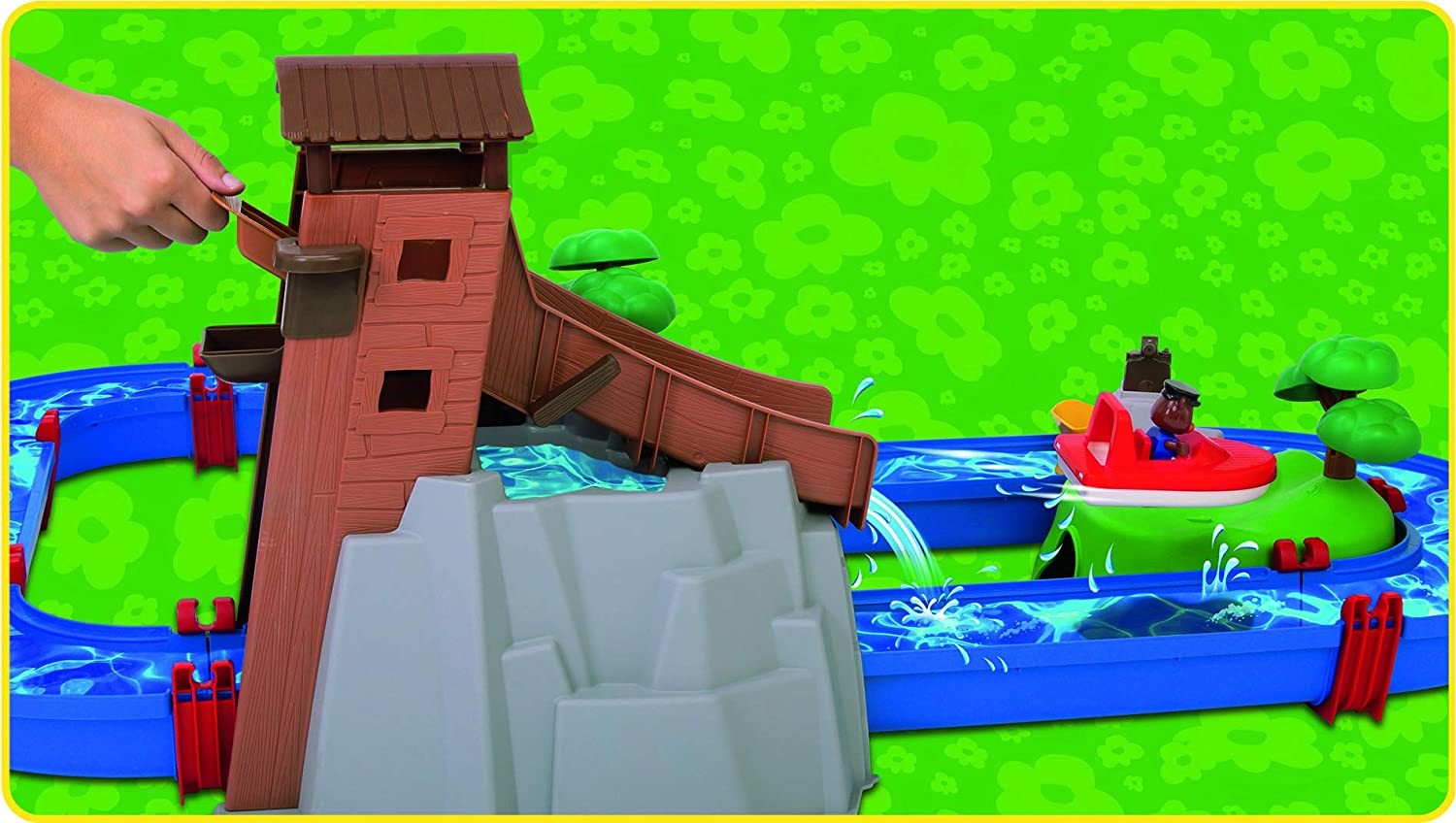Dieses große Wasserbahnsystem mit der neuen Spielfunktion begeistert die Kinder. Es gibt einen großen Bergsee mit einem Wasserfall und einem Aufzug für Boote sowie eine Wasserrutsche. Zwei Boote und zwei Spielfiguren rutschen gemeinsam den geheimnisvolle Rutsc...