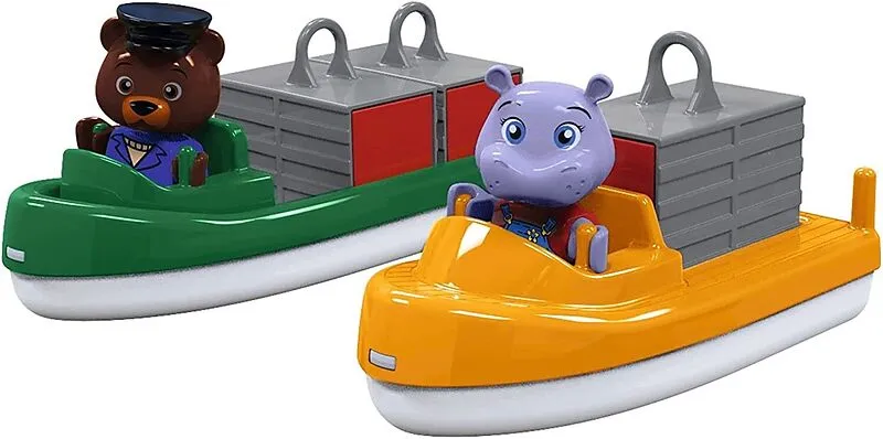 Und schon kommt wieder ein Containertransport an den Häfen an, für die Ent- und Beladung sind Bo und Wilma immer zustelle, hierfür dürfen die passenden Boote natürlich nicht fehlen. Egal ob in der Wasserstraße oder in der Badewanne, mit den Booten von AquaPlay...