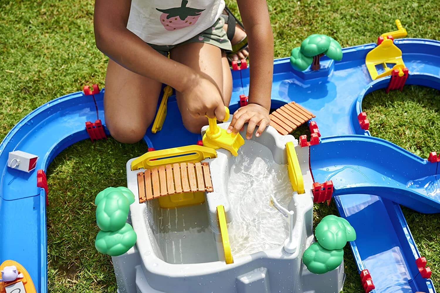 Hoher Spielwert aufgrund der vielen Zubehörteile und Funktionen: Brücken, Rutsche, Bergsee, Schleusen und manuelle Handkurbel zur Strömungserzeugung AquaPlay Mountain Lake Wasserbahn inklusive Spielfiguren