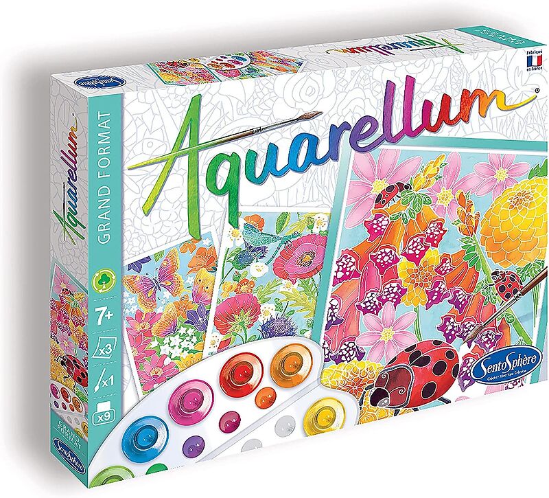 Marienkäfer, Libellen und Schmetterlinge... Tauchen Sie dank dieser 3 Illustrationen inmitten von Blumen ein und haben Sie Spaß, dank Ihrer Aquarellum-Palette, schöne Insekten und Pflanzen zu malen! Inhalt: 3 Ausmalbilder "Blumen" (32.5 x 25 cm), 1 hochwertige...
