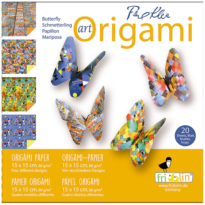 Künstler: Paul Klee (Papier-Design: Ausschnitte aus Kunstwerken) Faltmodell: Schmetterling 4 verschiedene Papier-Designs Traditionelle Faltaufgabe zur Förderung von Konzentration und Fingerfertigkeit