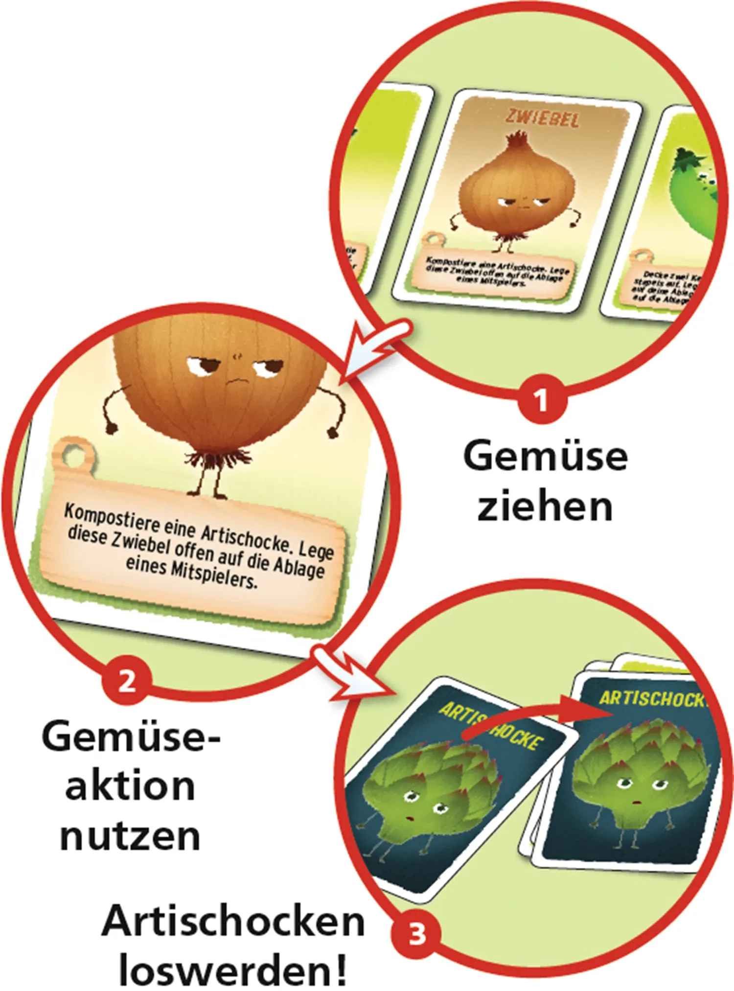 Erfolgsfaktoren: Wenige Regeln, viel Spielspaß Deckbauspiel auch für Gelegenheitsspieler Viel Interaktion Das Ziel: Weg mit den Artischocken! Das gelingt, indem man seinen Vorrat mit anderen Gemüsesorten auffüllt und deren Aktionen nutzt, um Artischocken auf d...