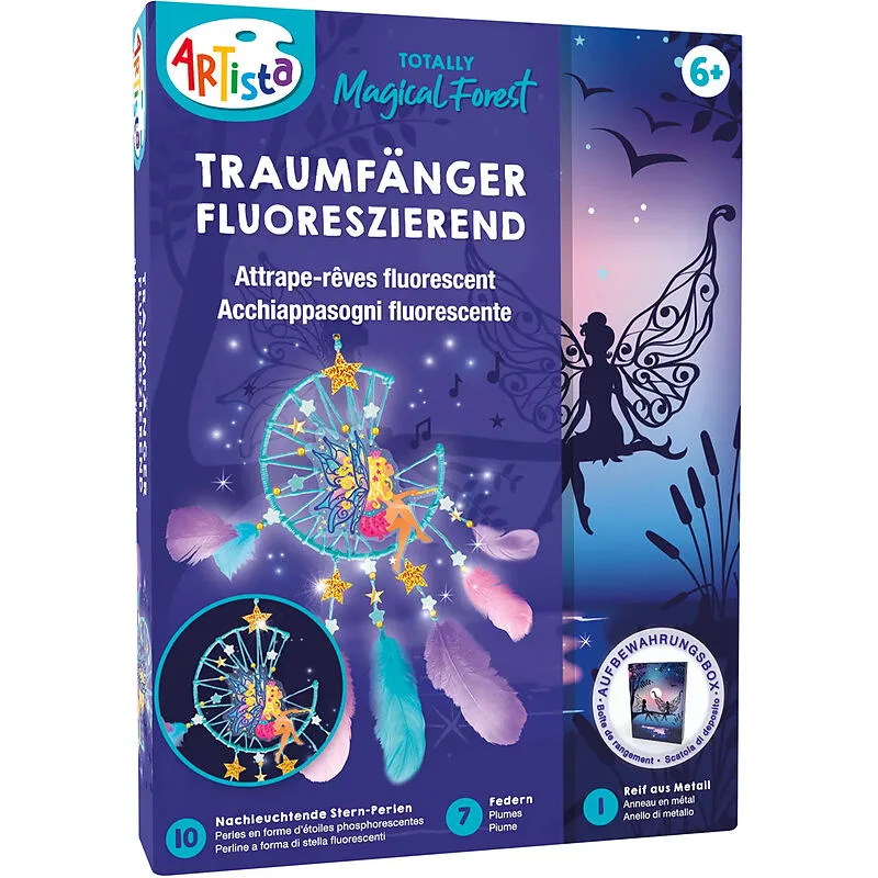 Kreatives All-in-One Bastelset für Kinder, um einen hübschen Traumfänger herzustellen. Ideales Geschenk, das jedes Kinderzimmer verschönert. Inklusive Anleitung mit Abbildungen. In ansprechender Aufbewahrungsschachtel. Inhalt: 1 Reif aus Metall, nachtleuchtend...