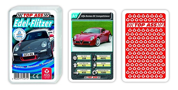 Lieferumfang: 32 Karten und ein Deckblatt mit Spielregel (59x91 mm) Sportliche Karossen und edle Autos: Im TOP ASS Auto-Quartett Edelflitzer sind die schönsten und edelsten Autos der Gegenwart versammelt und erstrahlen im neuen Design: Für die aktuelle Edition...