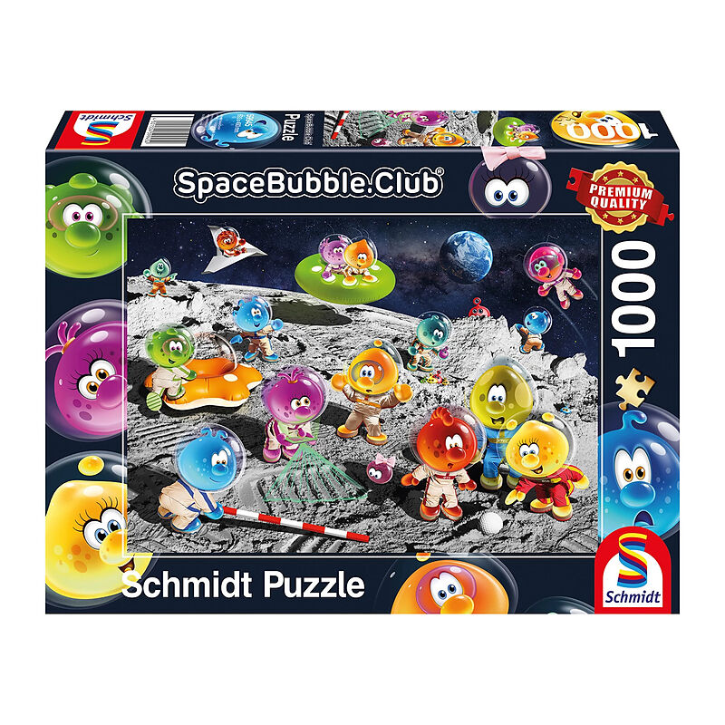 Puzzlemaße: 69,30 x 49,30 cm, 820 g Die SpaceBubble.Clubber kommen aus den Tiefen des Weltraums dem Space. Benutzen eine Seifenblase als Lebenserhaltungssystem die Bubble. Und sie agieren als eine etwas chaotische Truppe als Club. Sie sind neugierige, zutrauli...