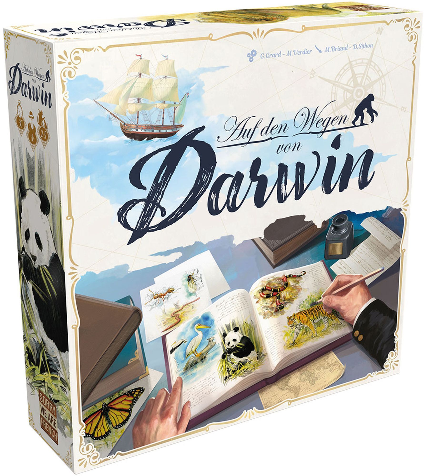 Auf den Wegen von Darwin Im kurzweiligen Set-Collection-Spiel Auf den Wegen von Darwin spielt ihr Nachwuchs-Forschende, die frisch an Bord der Beagle gegangen sind, um Charles Darwin bei der Vollendung seines Buchs ''Über die Entstehung der Arten'' zu unterstü...